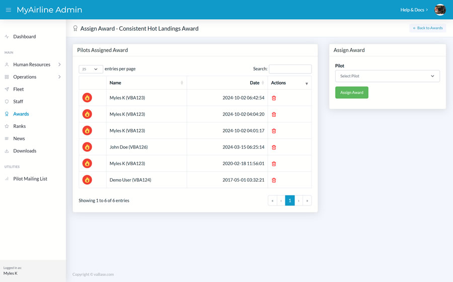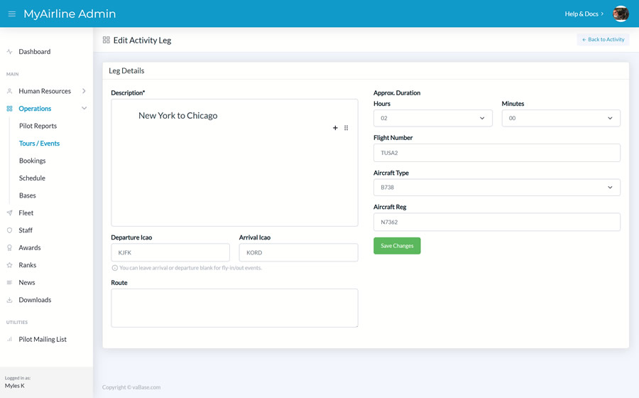 Create tours and events for your virtual airline. Automatic awards can be given to your pilots upon completion.